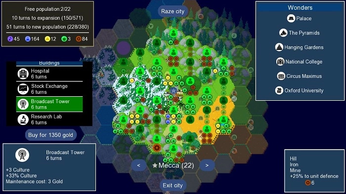 1. 自由城市构建:从无到有打造你的文明,对农田、兵营、市场等设施进行规划,一步步发展壮大成为强盛帝国。