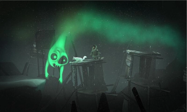 3、踏入严酷的北极天地——在被遗弃的沿海村落里,小心翼翼潜行,穿越、翻越那些摇摇欲坠的建筑。深入神秘的冰封森林,探寻其怪诞而宁静的树梢。勇敢直面永恒暴风雪那猛烈呼啸的狂风。唯有彼此扶持,Nuna与Fox方能在这绝境之中求得生存。