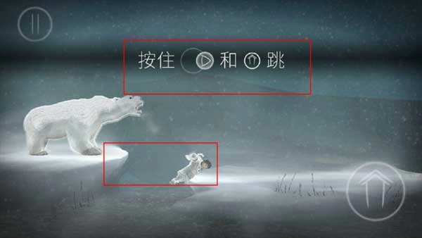 5、故事起始于小姑娘在一个狂风裹挟着暴雪的夜晚苏醒过来,身后有北极熊紧追不舍,玩家需点击左侧的奔跑按钮,从而开启逃离北极熊追击的行动。