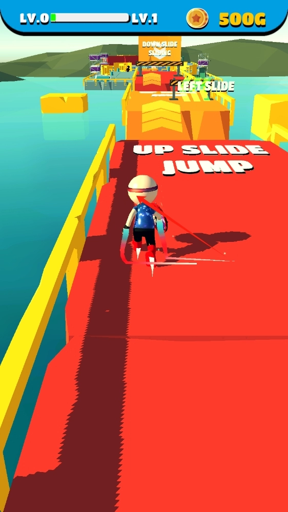 2、于跑酷界面,需专心留意跑道上的提示,一旦出现“UP - SLIDE - JUMP”,即刻做出上滑跳跃动作,巧妙避开各类障碍。