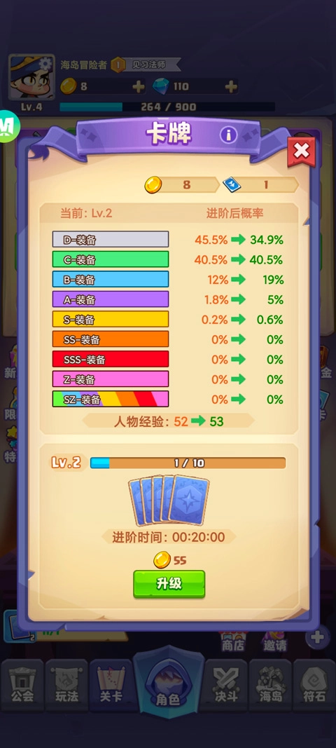 5、你还能通过提升卡牌池等级来获得更强大的武器,卡牌池等级越高,获得高级装备的几率就越大。
