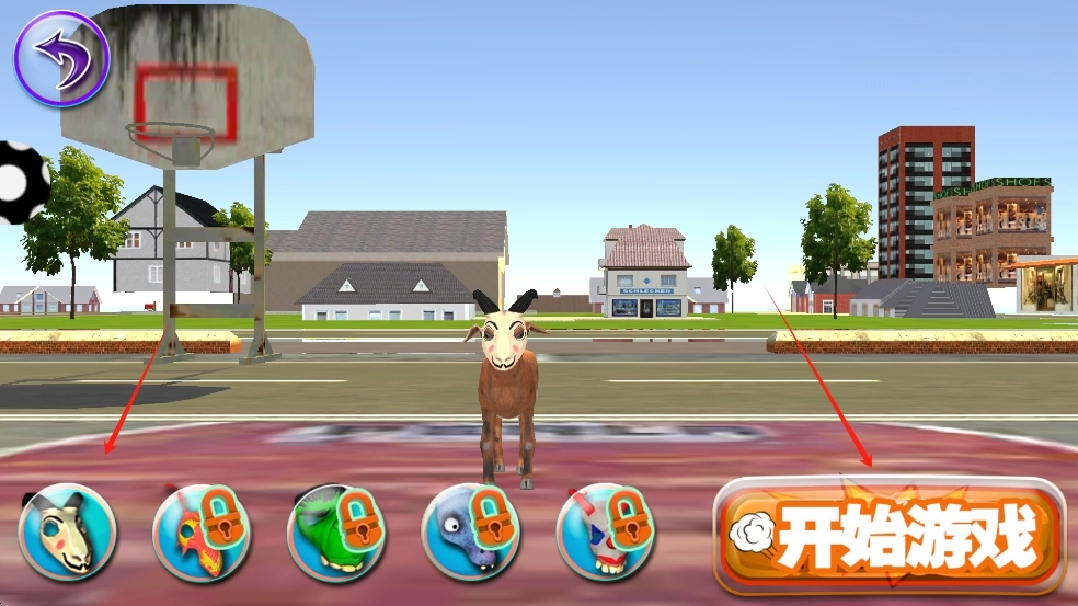 1. 来到选角界面,选中山羊角色,在界面左侧,还有山羊皮肤可供选择解锁,完成选择后,点击右下角的按钮,就能开启游玩。