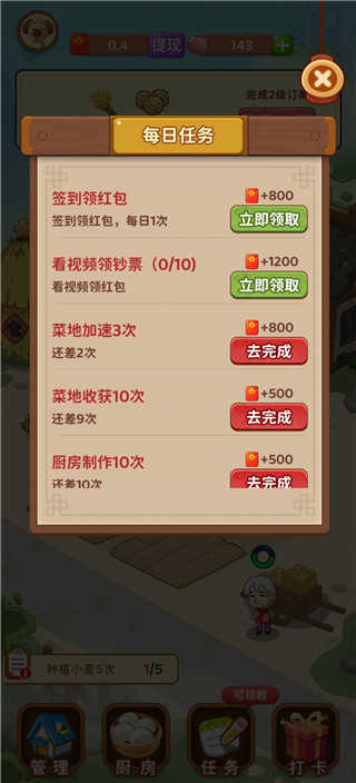 3. 古风风格的庄园玩法,在持续经营的过程中赚取红包,每天都能收获意想不到的新惊喜。