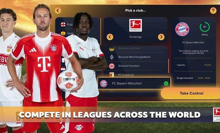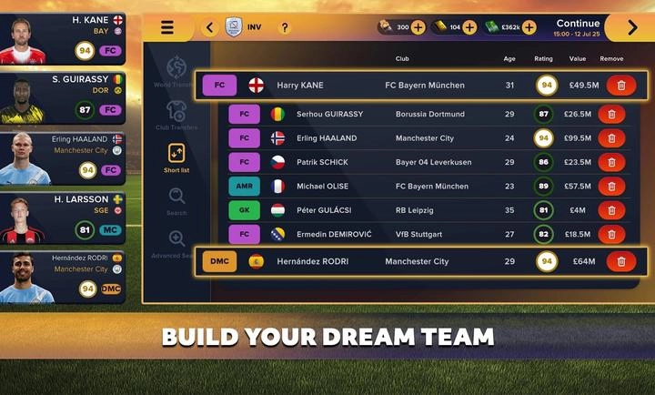 6、打造梦之队:在《Soccer Manager 2026》里执掌曼城、拜仁慕尼黑等著名俱乐部,组建一支由真实球星构成的梦幻阵容。