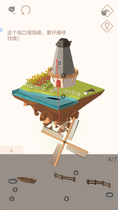 1. 进入游戏后,依照提示横向滑动下方的组件栏,找到风车叶片组件,然后点击将其选中。