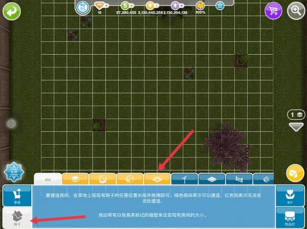 7、在格子上长按,接着拖拽出你所需的房间大小。待房间大小建造完成后,你还能够在商店里选购各类装饰品来装修房间。