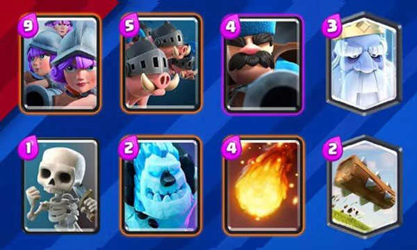 3、皇家猪作为进攻核心,三枪堪称吃费反打利器,这两张牌都惧怕火球,需掌握先用一张骗出火球,再利用另一张发挥更大作用的技巧。幽灵能辅助进攻,而猎人搭配小骷髅与冰人,要承担起看似难以完成的防守任务。这套卡牌的运用小编实难掌控,还是请秋季赛MVP Auk来为大家亲自讲解吧!