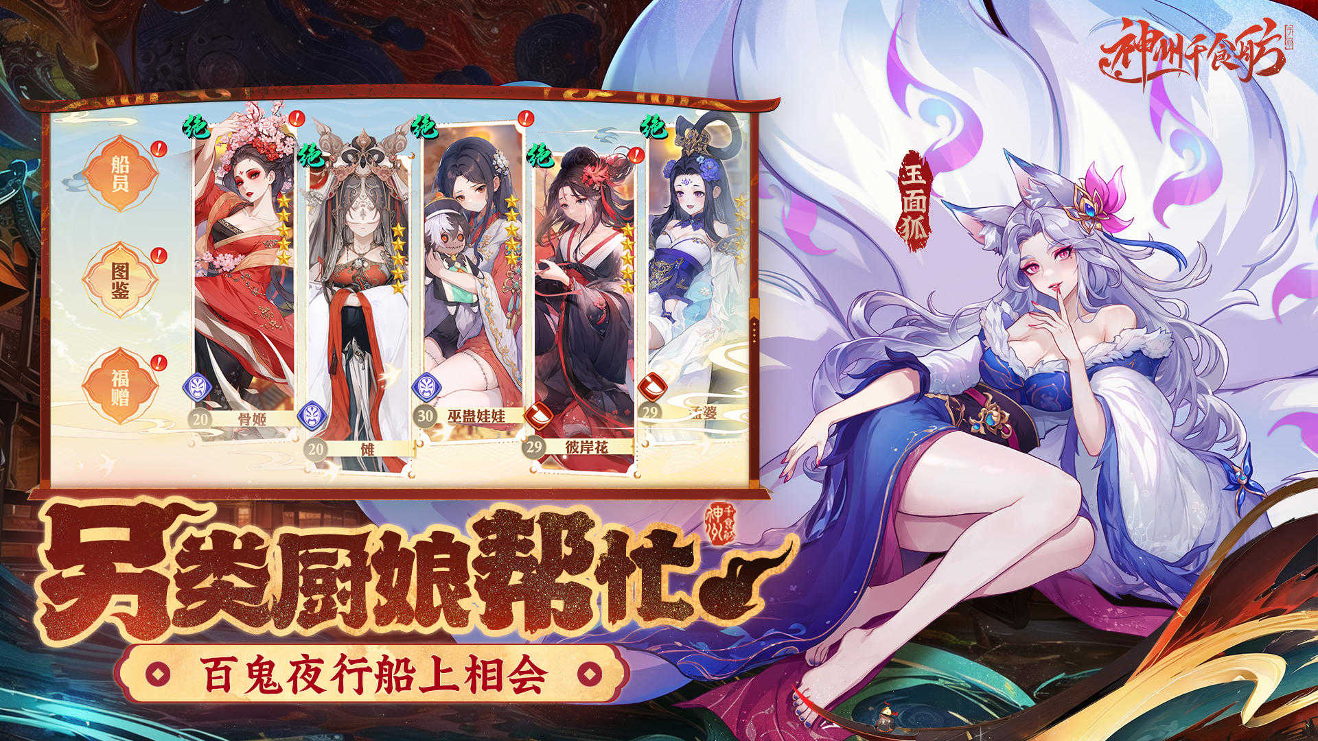 厨娘亲自掌舵,十八般厨艺无一不精!不仅有令人垂涎的美食,船上的俊男靓女更是让人大饱眼福,身心愉悦!形形色色的名厨与伶人,个个身怀绝技,助力你一路升级成长。来自各地的名厨、伶人和乐师纷纷汇聚于此,他们究竟是气场十足的御姐,还是风流倜傥的才子,亦或是可爱俏皮的萝莉,又或是元气满满的正太?一切精彩,只待你登上船,亲自揭开这场邂逅的神秘面纱!