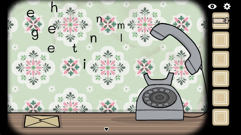 1、踏入房间,首先看到的是桌子上放置的电话与信封。柜子中锁着一个玻璃罐子,其上方摆放着一个花盆。镜子里映射出一个透着诡异气息的黑影。