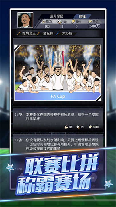 2. 该游戏着重于叙事,呈现了一位球员从初出茅庐的少年逐步成长为足球界巨星的历程。
