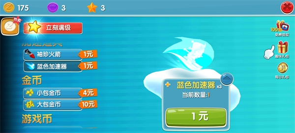 2、蓝色加速器:可使你飞行速度更快,并且能抵御一切伤害。