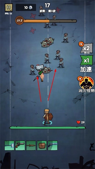 2、点击“战斗”,参与波次战斗,运用合成装备对士兵、怪物等类型的敌人展开攻击,抵御多波次的进攻。