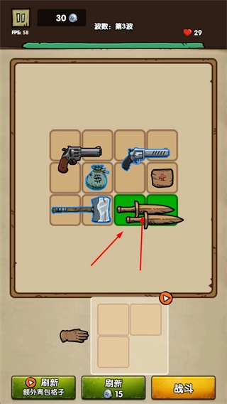 4、通过战斗获取资源,用以刷新物品、解锁新装备,不断进行合成、战斗并激活特性,向着抵御更多波次敌人的目标奋进。