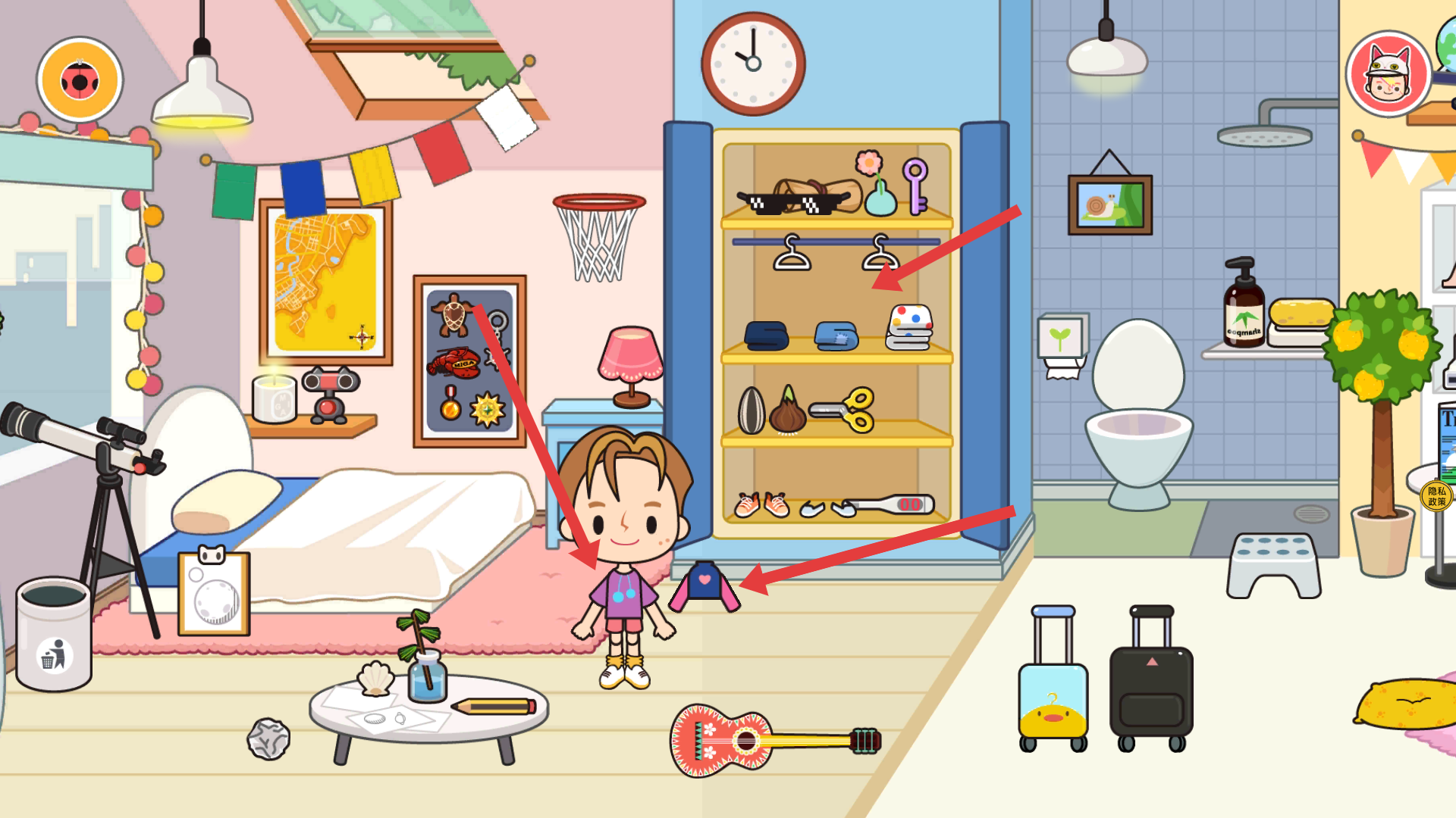 3、轻点喜爱的服装,然后拖至角色身上,便能完成穿搭。此外,还能点击房间里的其他家具,去感受房间内丰富多样的元素。
