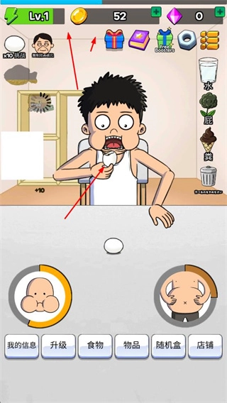 1. 能够借助角色进食之类的操作来积攒金币,金币的数量会在界面的上方呈现。