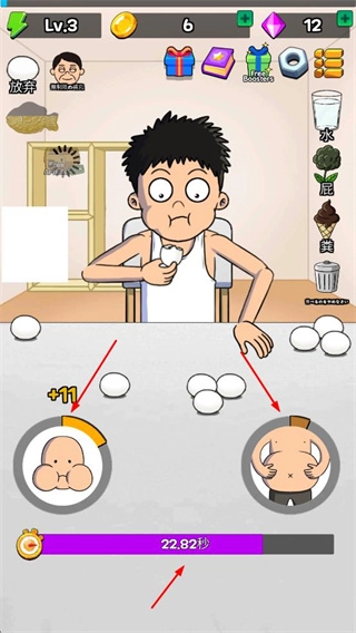 2. 在既定时间内,使角色与鸡蛋等物品展开互动,以积累分数,期间要密切留意相关进度条的变化情况。