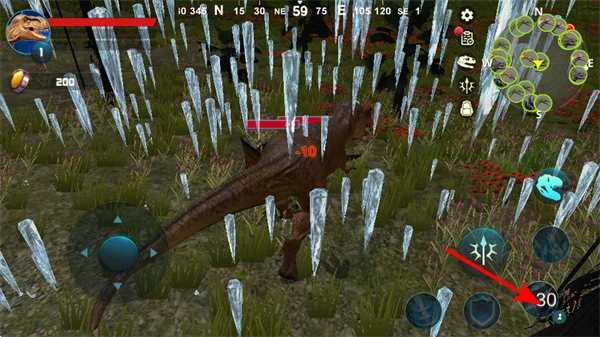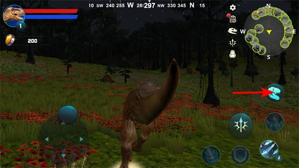 1、在恐龙冒险游戏里,点击右侧攻击类按钮就能发起攻击。攻击作为恐龙在野外生存与战斗的关键手段,主要用来抵御敌人。