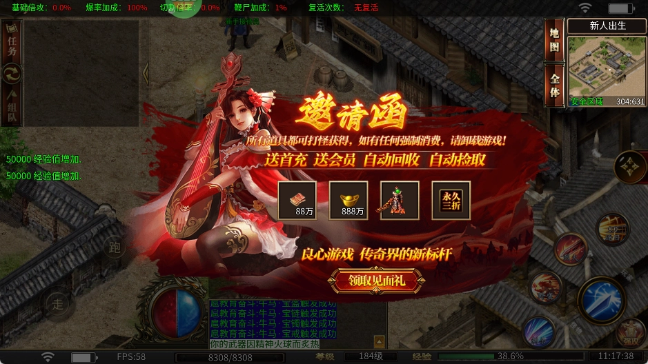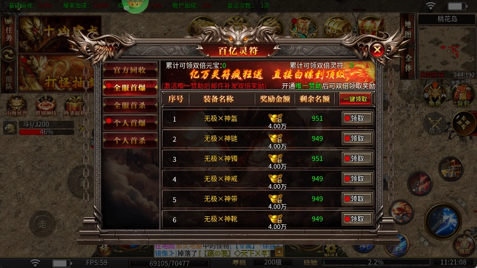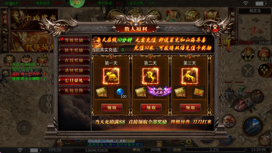 击杀怪物就能参与免费抽奖,真实充值、仙位、神装等所有道具统统免费领取!