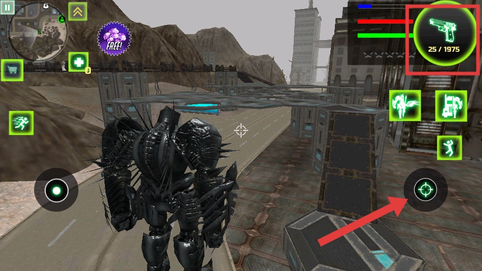 4、在游戏里,若使用购买的武器,点击右侧的攻击按钮就能进行射击,凭借强力装备可轻松完成战斗任务。