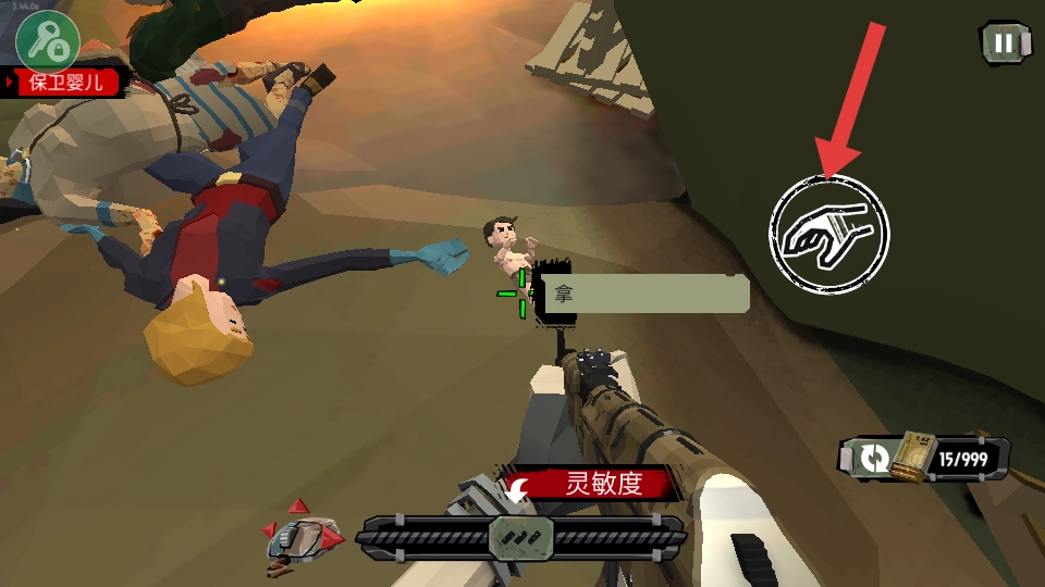 3、走到婴儿近旁,点击右侧的交互图标,进行【拿】这个操作,把婴儿带在身旁。