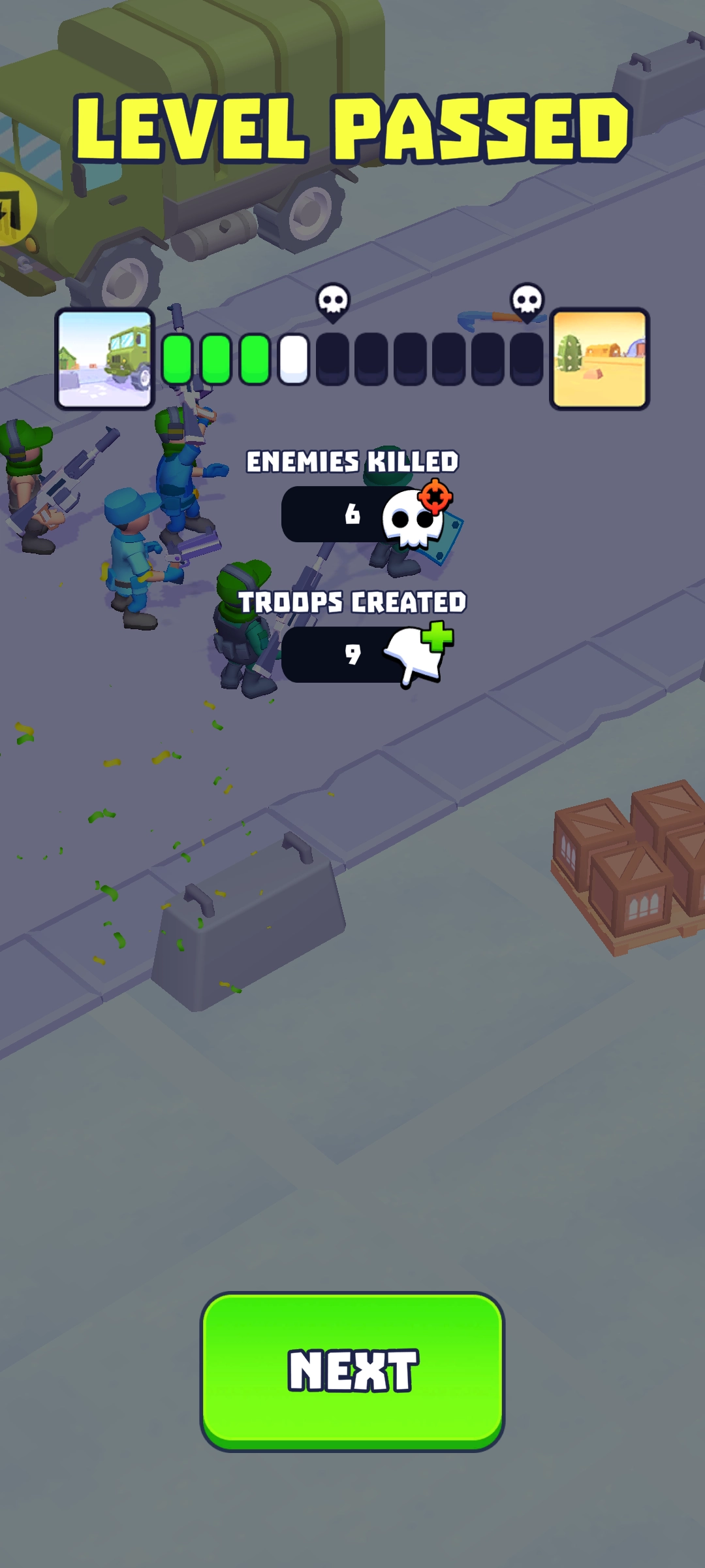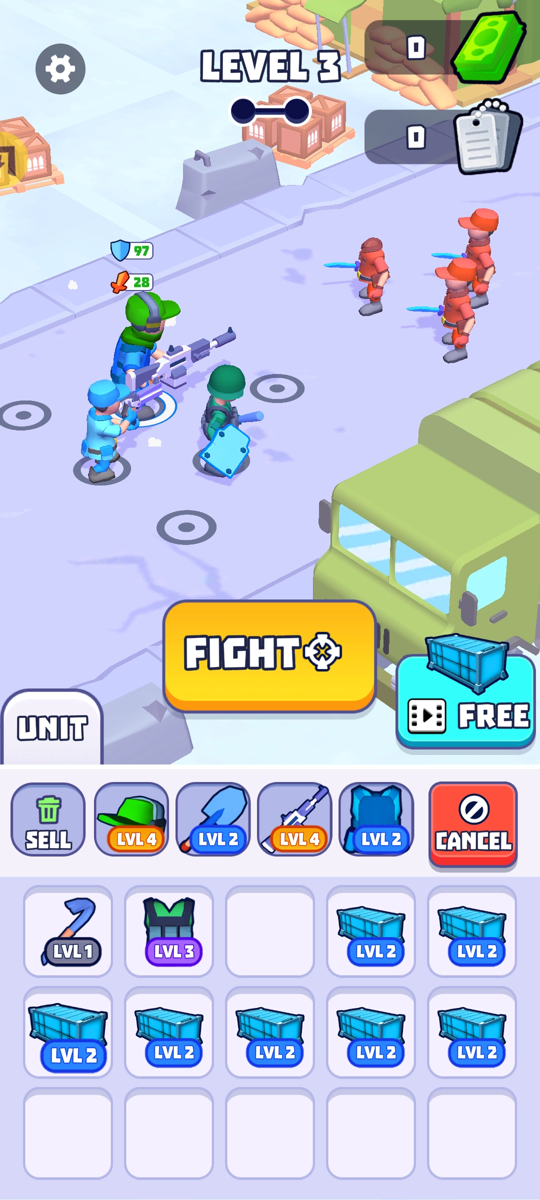 《集结小队》是一款主打合并升级与策略战斗的休闲小游戏。它采用简约的卡通画风,游戏内布局简单明了,玩家能轻松快速上手。在游戏中,你将拥有一支终极斗士小队,小队成员需由你亲自打造,还能对角色形象进行个性化定制,甚至创造出具备独特技能的队员。你要自由搭配武器、盔甲等装备,赢得关卡胜利,解锁新装备,提升小队实力,迎接更高难度的挑战。感兴趣的玩家别错过,快来这款游戏,一同开启组建小队、击败敌人的热血游戏之旅!