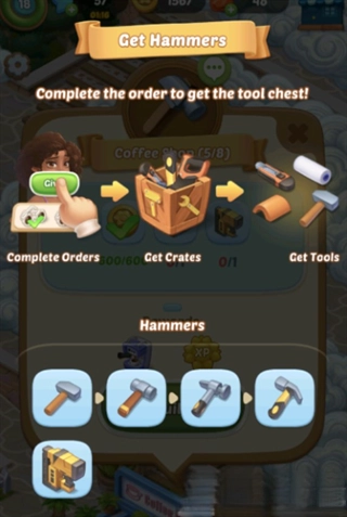 当你积攒到一定数量的金币或工具后,即可点击对应的页面来完成房屋的建造。