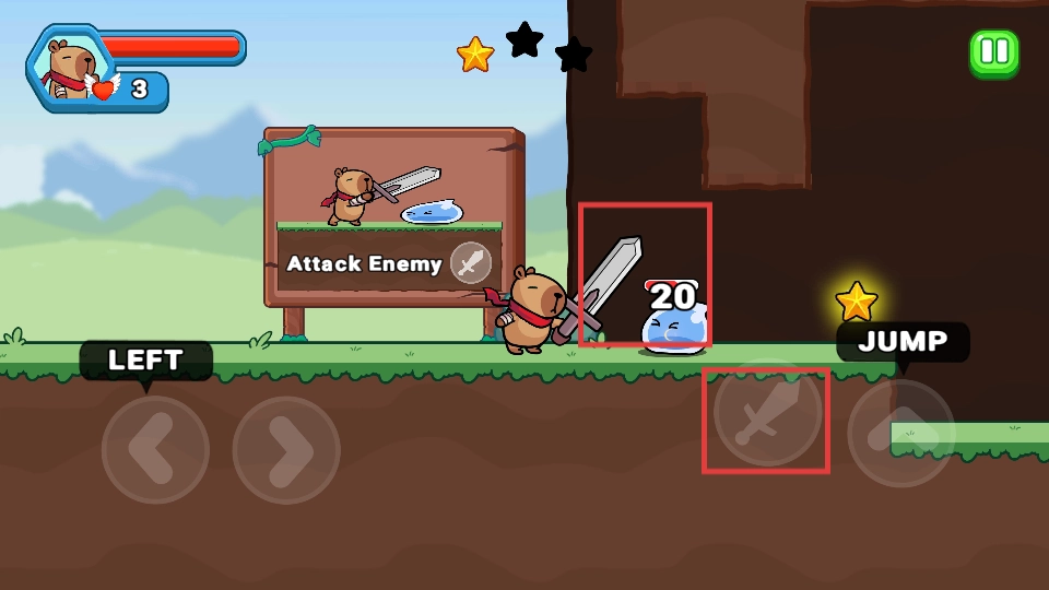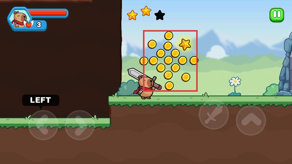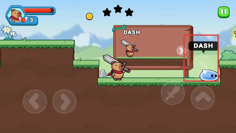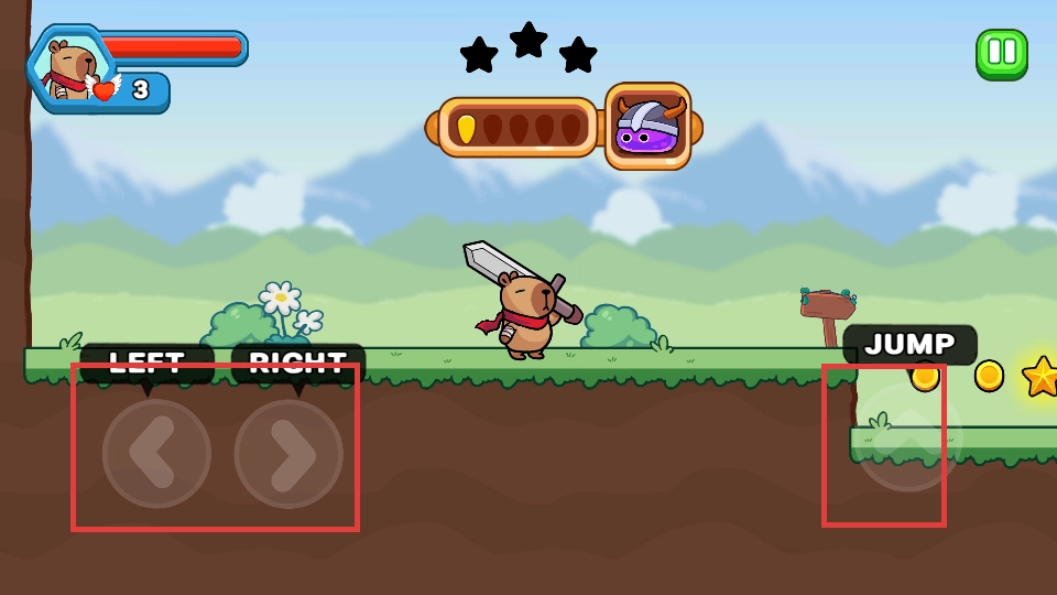 1. 通过左右方向键操控角色移动,点击跳跃按钮跨越障碍,并收集金币与星星。