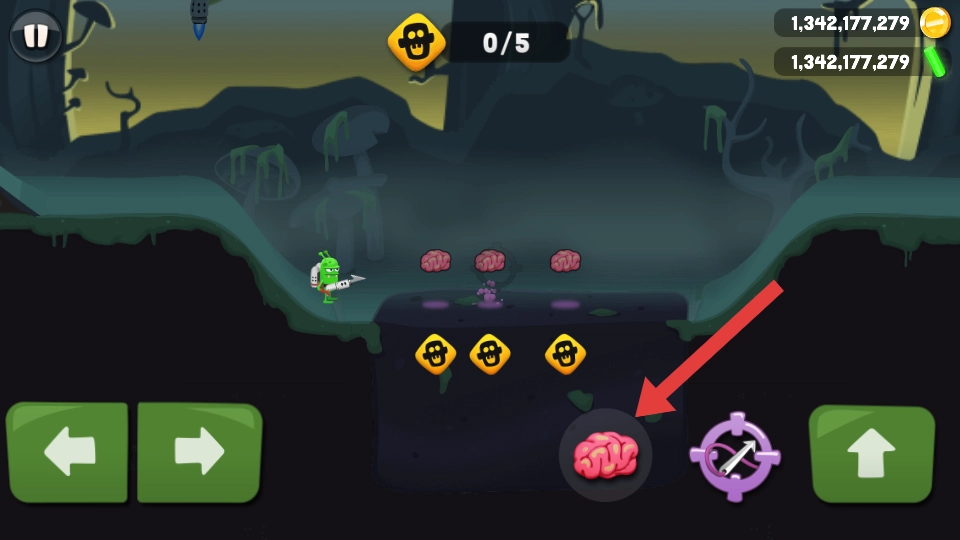 2. 进入游戏之后,寻觅僵尸的藏身之处,点击【大脑】,把大脑投掷出去以引诱僵尸。