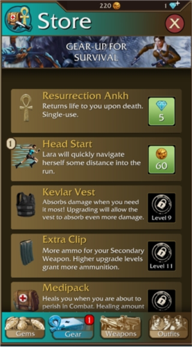 7、可在一系列经典的劳拉服装里挑选,每套服装都具备专属的游戏特权。