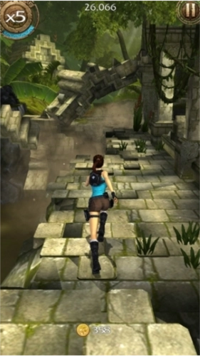 1、《劳拉:遗迹逃亡》在操作玩法方面,沿用了《神庙逃亡》的核心玩法。