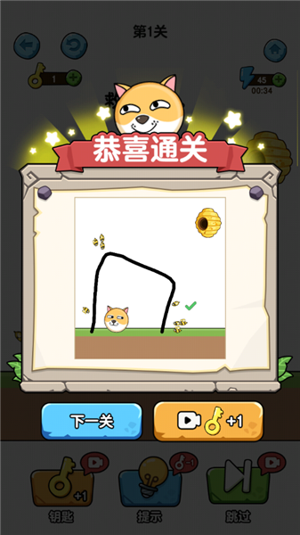 2、独具创新的画线玩法:玩家需借助画线的方式来阻拦蜜蜂,确保狗狗不遭受叮咬。这一新颖独特的玩法,不但对玩家的逻辑思维能力有所考验,还极大地增添了游戏的趣味性。