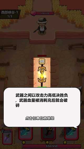 2、武器的对决以攻击力高低定胜负,当武器的血量耗尽,便会破碎。
