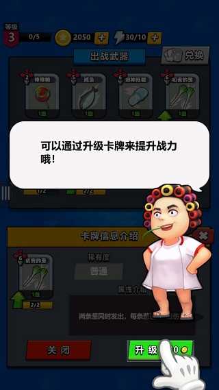 3、后续玩家能够在主界面的“武器”系统中,对自己的武器牌库进行重建。在这个过程里,玩家还能通过升级卡牌的方式提升战力。武器养成所需的卡片,来自关卡掉落,关卡必定会掉落武器碎片。武器升级需要消耗碎片,只要玩家持有足够数量的碎片,就能瞬间提升战力,轻松秒杀怪物。