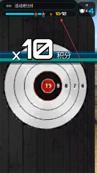 1. 来到游戏界面,确定目标活动积分为8,关注剩余球的数量,对准靶心做好发射准备。
