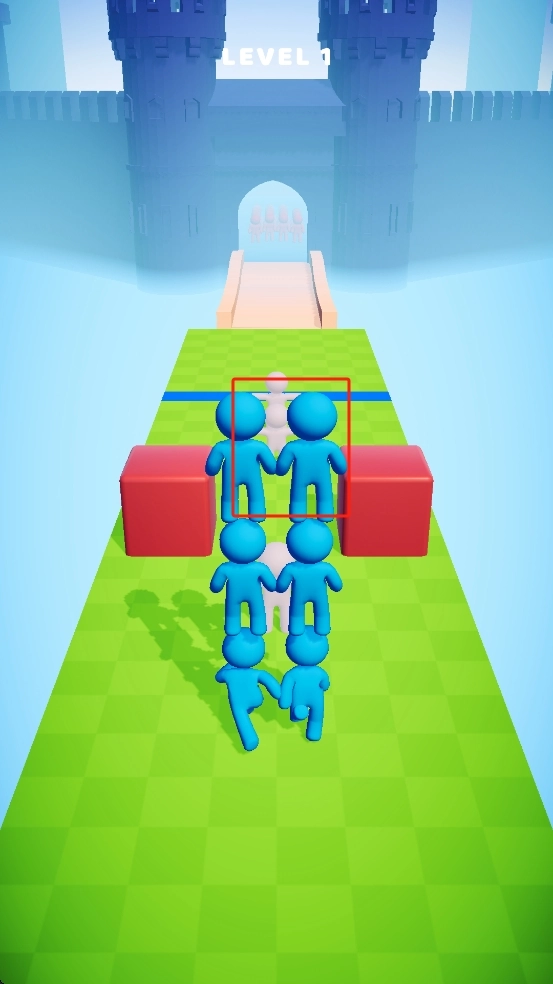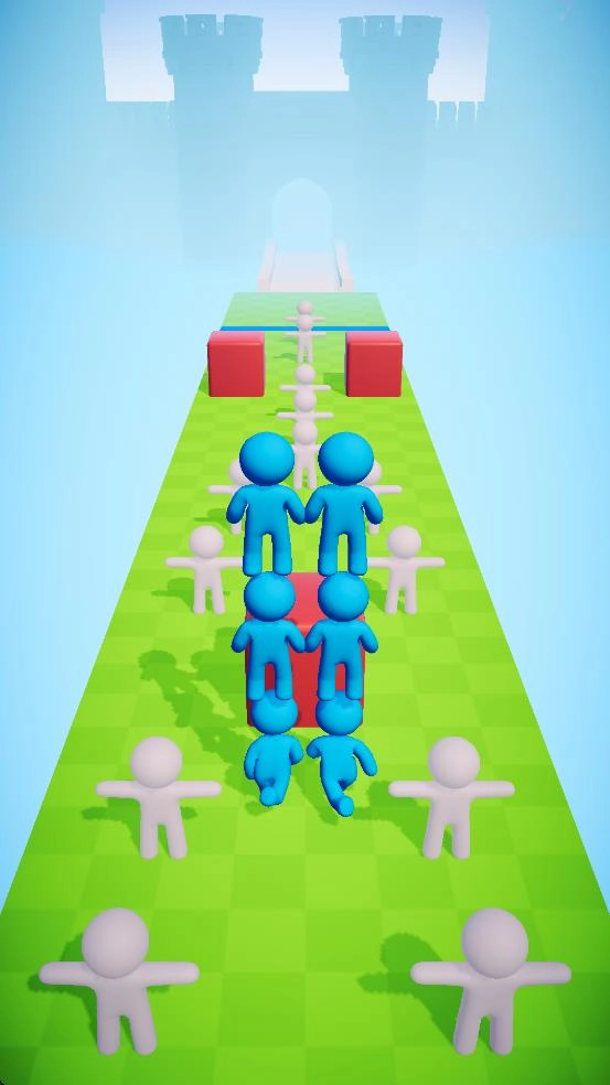 2、在行进过程中收集蓝色小人,使其堆叠形成人形队列。当碰到通道类的障碍时,要让队列根据通道宽度进行适配,以通过障碍,且始终保持堆叠的形态,切勿分散。
