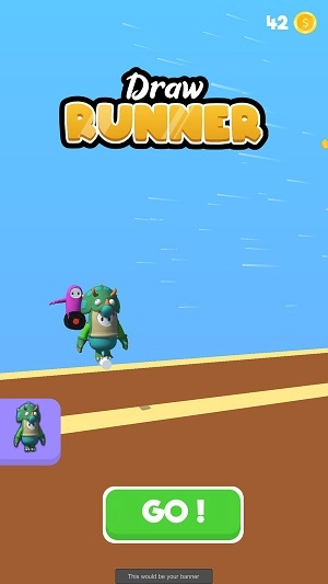 1. 在启动界面,轻点“GO”,即可操控骑恐龙的角色,开启金币收集之行。点击按钮,就能开启当下的游戏。