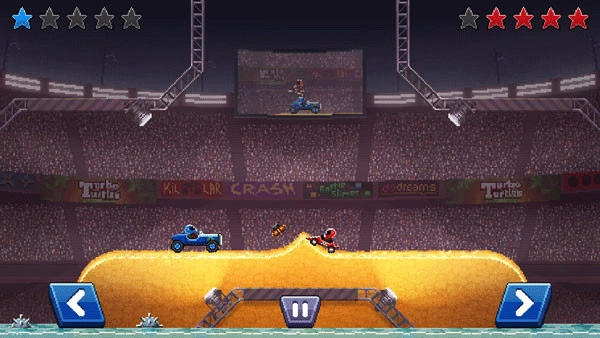 2在二维横向视角的竞技模式里,玩家会置身于一个封闭的对战空间,操控专属载具撞击其他参赛者,率先命中对方头部的一方将赢得比赛。