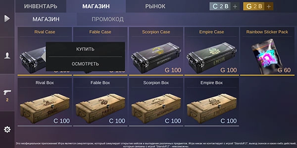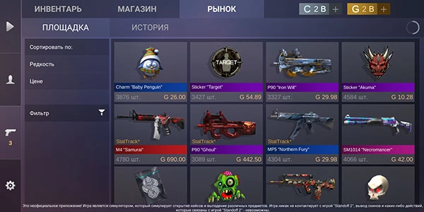 对峙2开箱模拟器是以“对峙2”为原型打造的开箱模拟类游戏,其英文名为standoff2。借助这款模拟器,玩家能够随时随地体验模拟开箱带来的无穷乐趣。为了最大限度还原真实感,该模拟器不仅完整复刻了对峙2中的所有武器与道具,就连稀有物品(出金)的掉落概率也与官方公布的保持一致,从而让玩家能最大程度感受近乎真实的对峙2开箱过程。