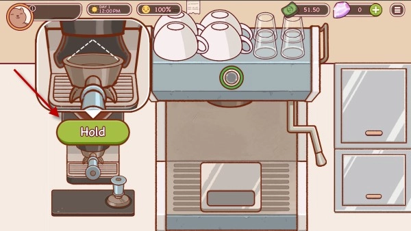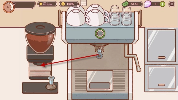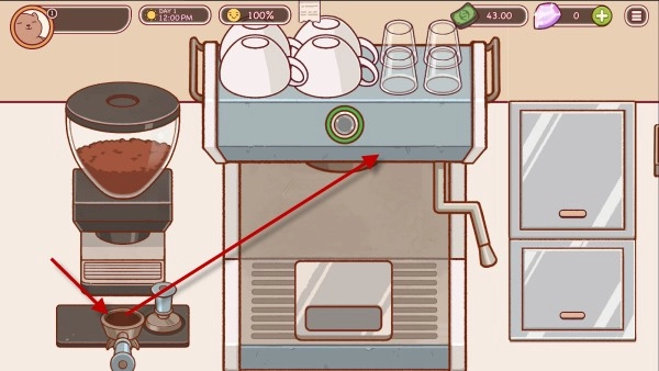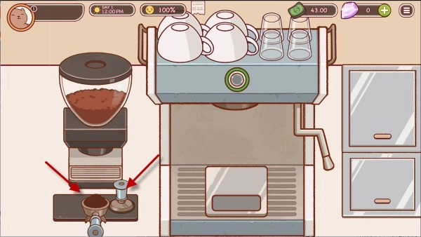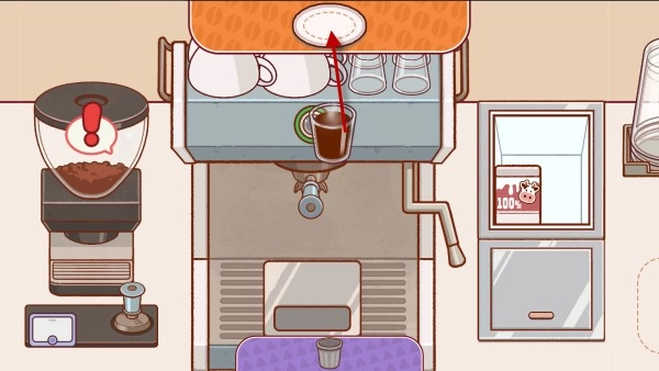 装满之后,我们点击旁边的道具将咖啡粉压平。