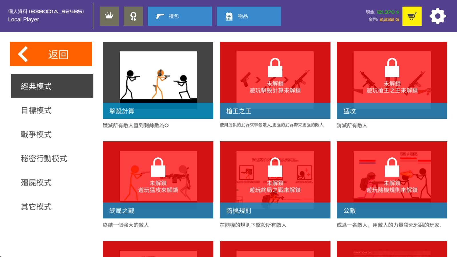 经典模式、目标模式、战争模式、僵尸模式等多样玩法可供自由体验,操控你的火柴人尽情享受设计的乐趣吧。