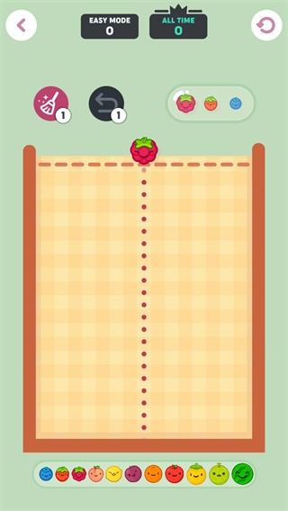 游戏里的所有关卡基本都能选择难度,这个关卡和合成大西瓜玩法相同,把相同的水果合成就能得到大西瓜,游戏下方会显示所有水果的合成方向。