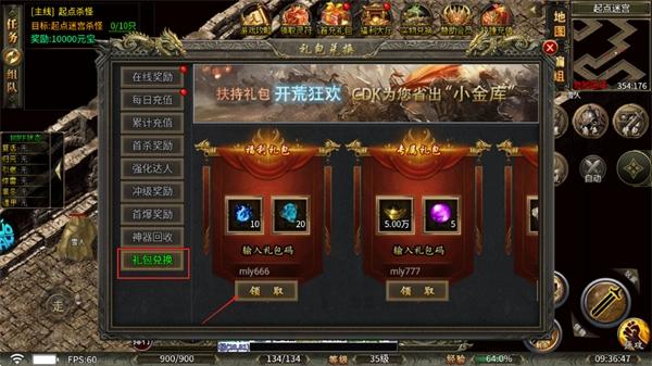弹出页面选择礼包兑换,输入兑换码领取即可