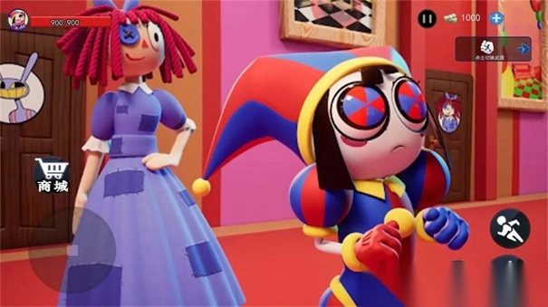 找到界面上那个带着红色箭头标识的“开始游戏”按钮并点击,接着控制小丑形象的角色,进入名为“欢乐小镇”的场景,正式启动这段充满趣味的冒险之旅。