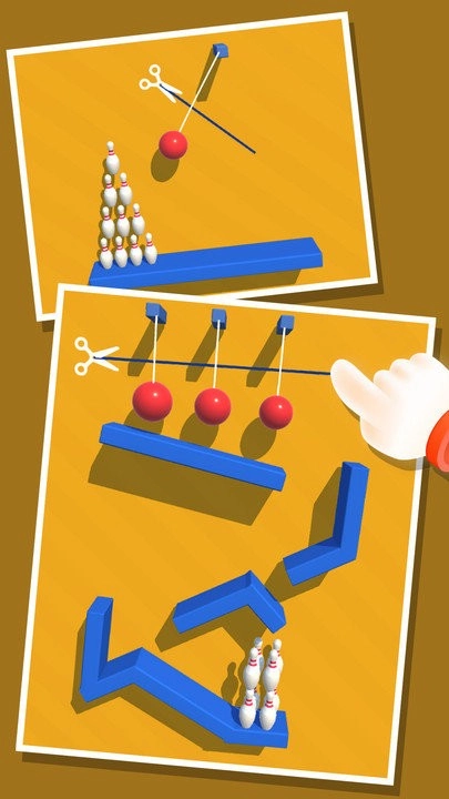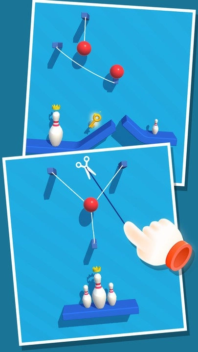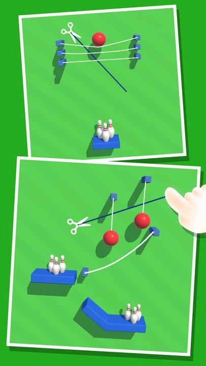 这是一款以真实物理法则为基础的创新解谜游戏,玩家需要通过切断绳索的方式,引导弹力球准确撞击目标。
