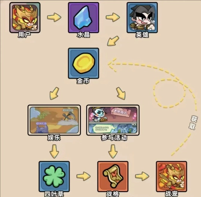 基础玩法:首先水晶石是开始的启动资源,玩家花费40水晶开通一张英雄卡,英雄卡的周期为30天,每天产1金币,1金币大概为2米,一共产30金币,就是120米。