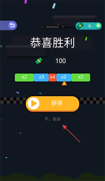 完成关卡后,若不愿通过观看广告获取奖励,可点击【不,谢谢】选项跳过,随即进入下一个关卡继续挑战。