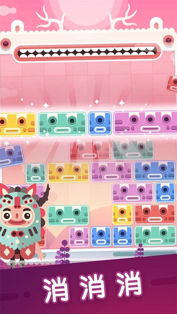 在这款消除类游戏里,有一种特殊角色的成长机制:通过不断完成消除任务获取成长值,就能让这个角色逐步变强。随着等级提升,不仅能解锁造型独特的神秘面部装饰,还能获得各种实用的辅助物品。比如有一个能让特定方块暂时停止变化的道具,用上它可以让玩家在挑战关卡时更加得心应手,大大提高通关的速度和成功率。