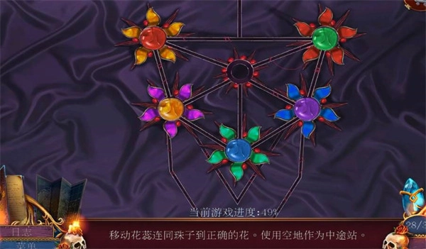 玩家需要把花蕊移动到对应颜色的珠子上,其中绿色花蕊向上移动,蓝色花蕊向下移动,绿色花蕊向右移动,紫色花蕊向右移动,黄色花蕊向下移动,这样就能解开谜题了。