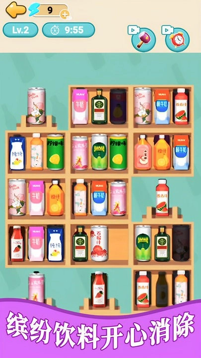 你可以通过拖动操作,把带有相同图案的杯子移动到同一排。当三个或更多相同款式的杯子在一条直线上连起来时,它们就会自己消失,同时为你增加分数。