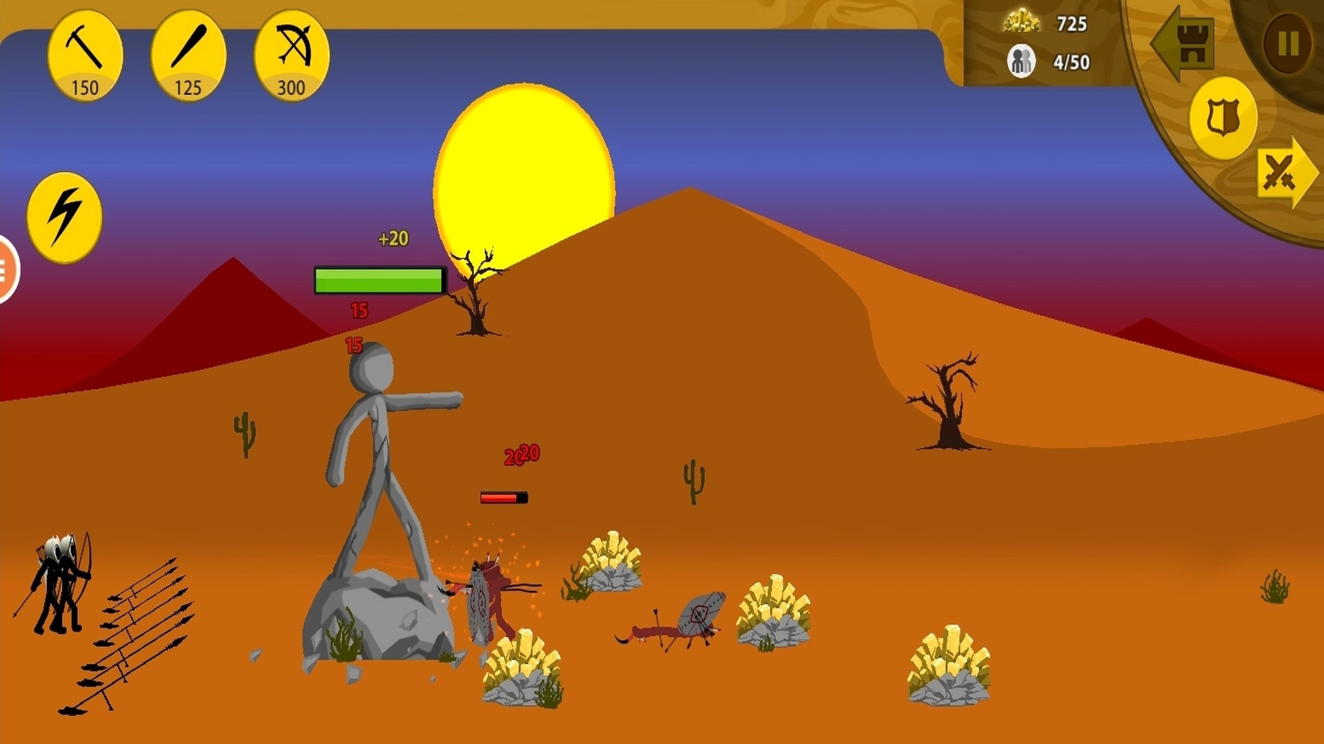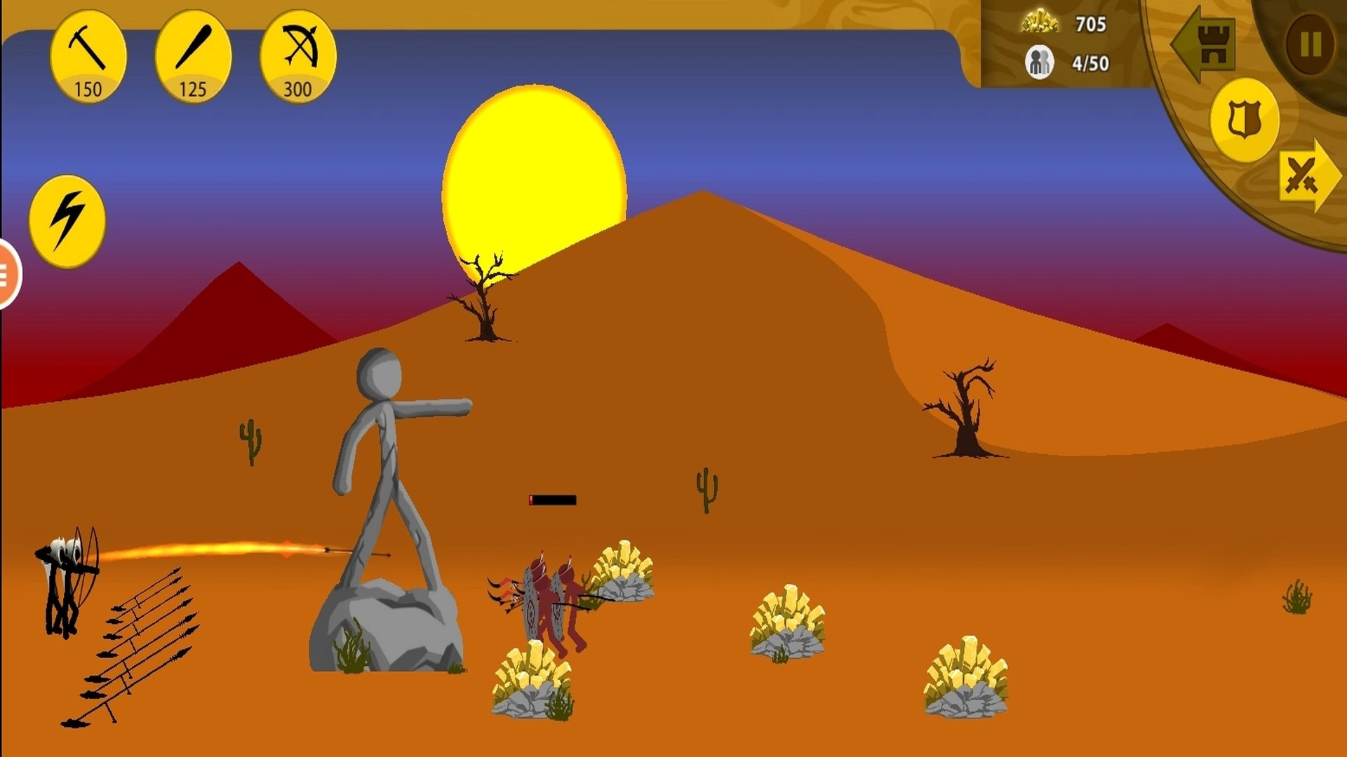 这款游戏以火柴人作为核心角色,巧妙地将即时战略玩法与动作类游戏的爽快感相融合,是一款聚焦火柴人世界的战争题材作品。
